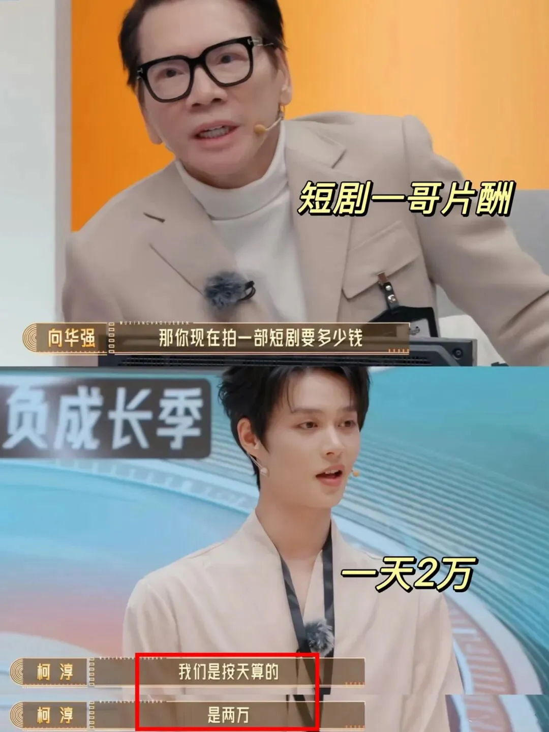 短剧头部男演员柯淳上综艺就说过自己一天2万。现在的短剧头部演员一般日薪在3-8万元,顶流演员一部剧拍摄7-10天收入可达30-80万;部分演员叠加平台分账,比如《半熟老公》男主角王凯沐分账150万。另外,顶流演员还有商务合作及直播收益,年入超千万,反超传统内娱二线明星。