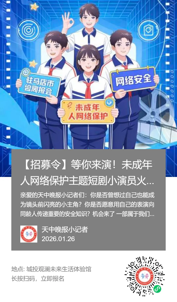 未来,入选的小演员们将参与公益短剧的拍摄,用镜头传递网络安全的重要性,而天中晚报小记者们也将继续以自己的方式,为守护未成年人网络安全贡献力量。
