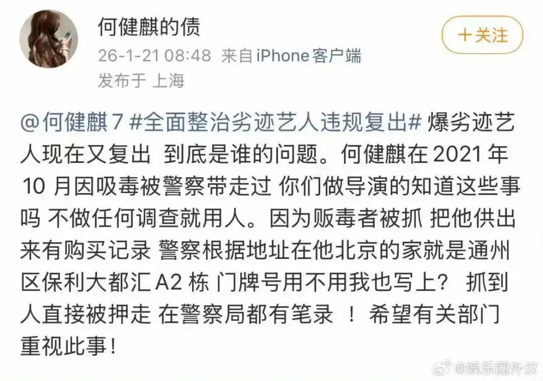 不过抛开吸D这件事的真实性,这也不是何健麒第一次塌房了。