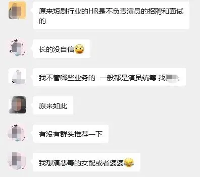 短剧这个行业分工还是很明确的,群演是由单独的人员在负责招聘,他们可能是劳务公司,可能是中介,他们这一部分演员可以串演多个剧情,多个短剧,而不需要被某一部短剧固定。这里面的亮点马上引起了我的注意,因为我平时也看短剧,竟然有人愿意演恶毒的女配或者婆婆?这是什么思维?我自己看短剧的时候看到剧情这种角色咄咄紧逼,有一种压迫感隔着屏幕传出,所以我自己是不喜欢这种角色及台词套路的,几乎把人性的尖酸刻薄,自私冷酷,见利忘义,演的太逼真,没想到就这样的“容嬷嬷”形象,竟然有人争先恐后的去争?是我落后了吗?还是只有这样才能被大家记住?亦或者是为了表达自己的处境,或者是自己的一种宣泄?我不得而知,隔着屏幕,我不知道他们的想法,不过这种不是个例哈,后面还有更大的瓜