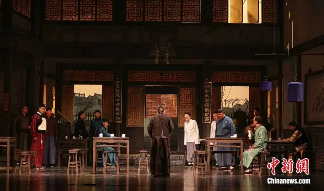 成立于1952年的北京人艺,七十余年间创作出了《龙须沟》《蔡文姬》《雷雨》《茶馆》等一批经典戏剧作品,一代代艺术家心怀“戏比天大”的敬畏,让这些作品在经久打磨下长演不衰,也让一方舞台成为中国话剧艺术的殿堂。《茶馆》剧照。北京人艺供图