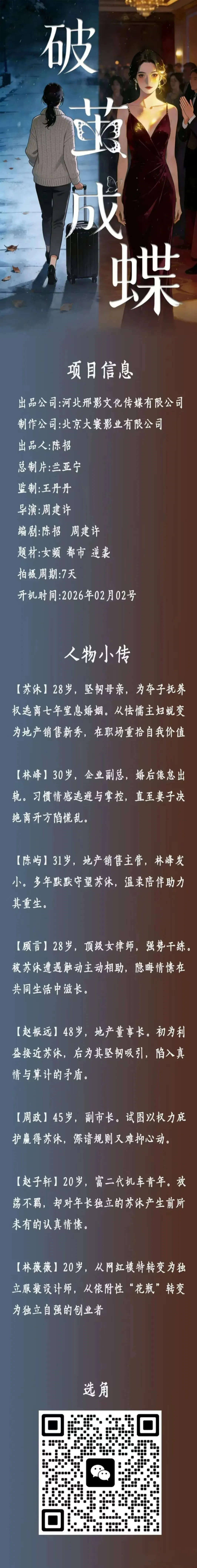 【2月2日】短剧《破茧成蝶》招募演员