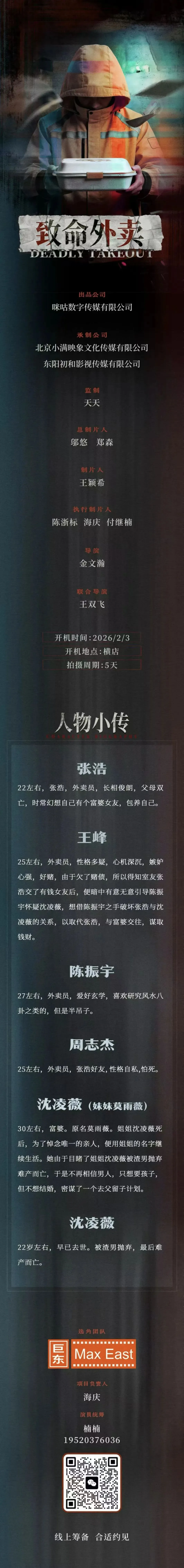>【2月3日 横店】短剧《致命外卖》招募演员