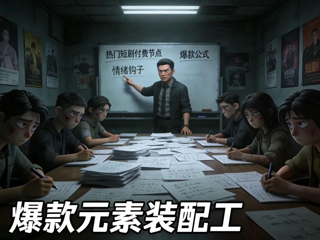 有编剧回忆她入职某短剧公司时接受的培训,主编要求她们日日“拉片”,将热门短剧的付费节点、情绪钩子逐一拆解,形成“爆款公式”。创作时,只需将新剧本的人物、场景与公式对齐替换。