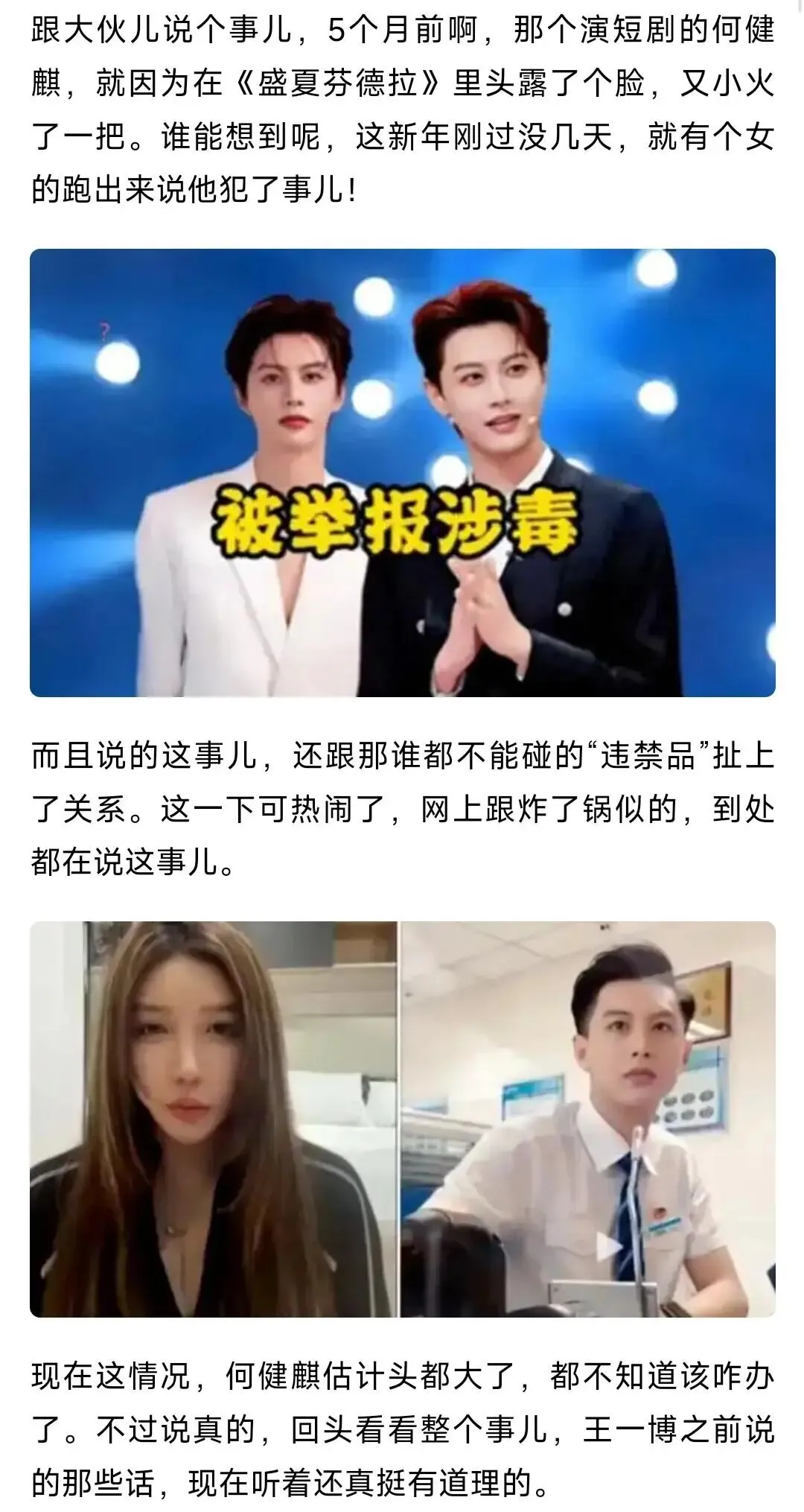 2026 年开年的娱乐圈,刚被一波明星爆料闹得沸沸扬扬,女网红接连点名鹿晗、檀健次等多位艺人,网友白珊珊也喊话吴磊,热度还未散去,爆料的风浪竟直接刮进了当下大火的短剧领域 —— 短剧头部男演员何健麒,被自称其前女友的网友实名举报涉毒,还牵扯出出轨行为,瞬间引发全网关注。