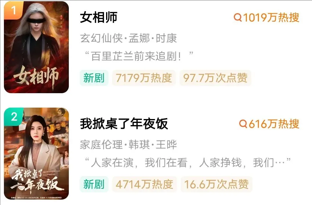 今天在红果热搜榜看到两部题材相距甚远的短剧挨在一起。《我掀桌了年夜饭》看这名字,很大胆很猎奇很写实,顿时激起了我刷剧的欲望。在生活中很多人,特别是女性,遭受着家庭的霸凌,她们却后知后觉。