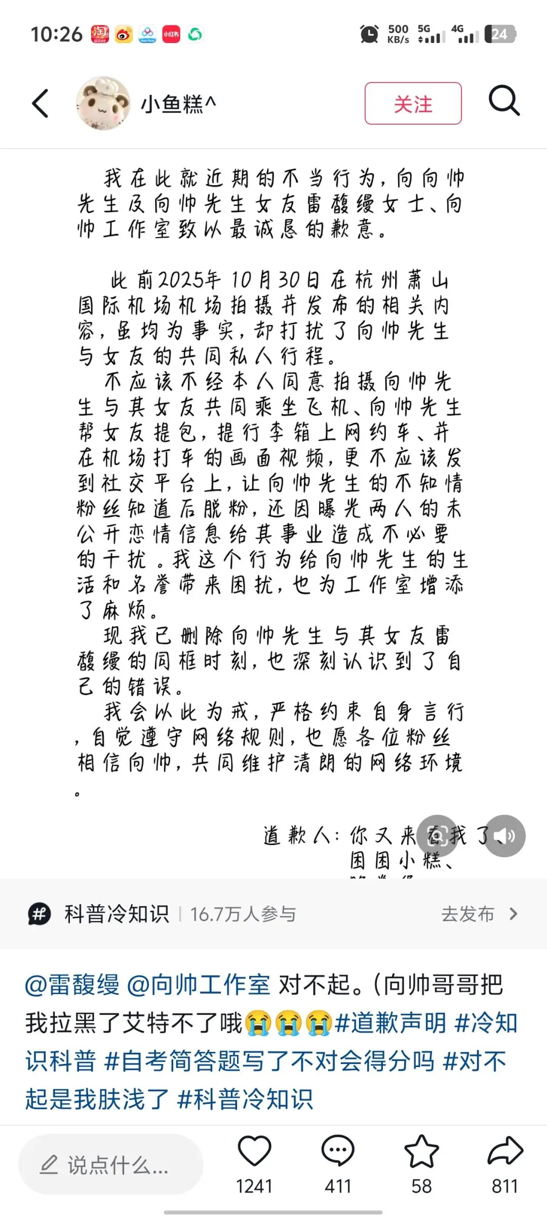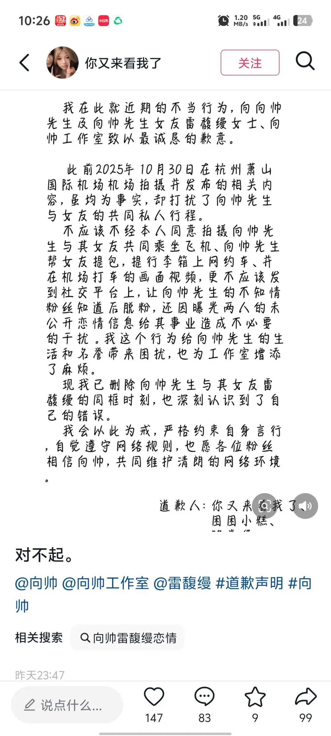 前段时间粉丝去线下接机,拍到和女友一起!实锤向帅有女朋友去!随即粉丝脱粉并将接机视频公布!cp粉随即表示失望!(图1)