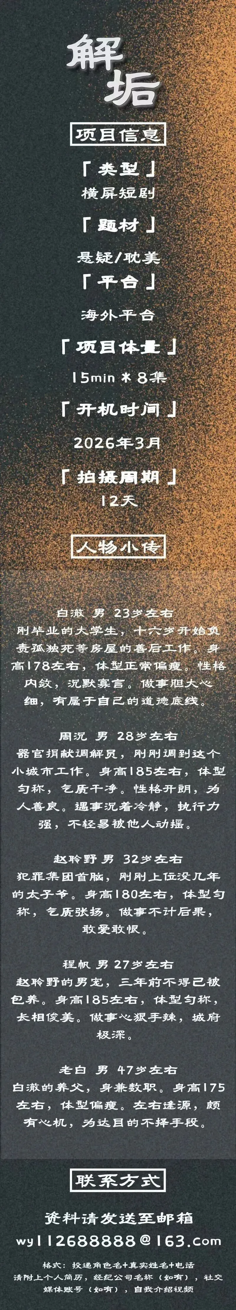 >悬疑短剧《邂逅》招募演员