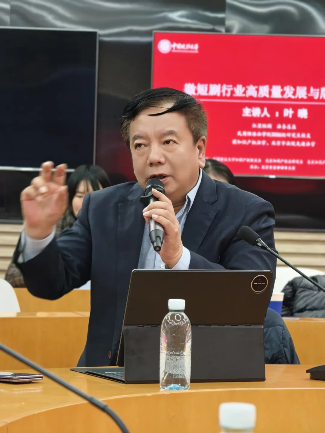 主持人刘瑛老师介绍到,本次讲堂主讲人将从行业发展现状出发,带我们透视微短剧与短剧、长剧在生产、用户、商业变现等维度的差异,在此基础上聚焦微短剧的作品属性界定,剖析行业版权侵权痛点以及治理路径,为行业合规与创新发展提供前瞻性思考。活动现场,刘瑛老师还以一首七绝致贺:“短剧集英臻至善,版权护创启新章。骏驰岁首开宏境,智汇知行福运长”,既凝练了本次讲座的核心主旨,也寄托了对行业发展与新年吉庆的美好期许。