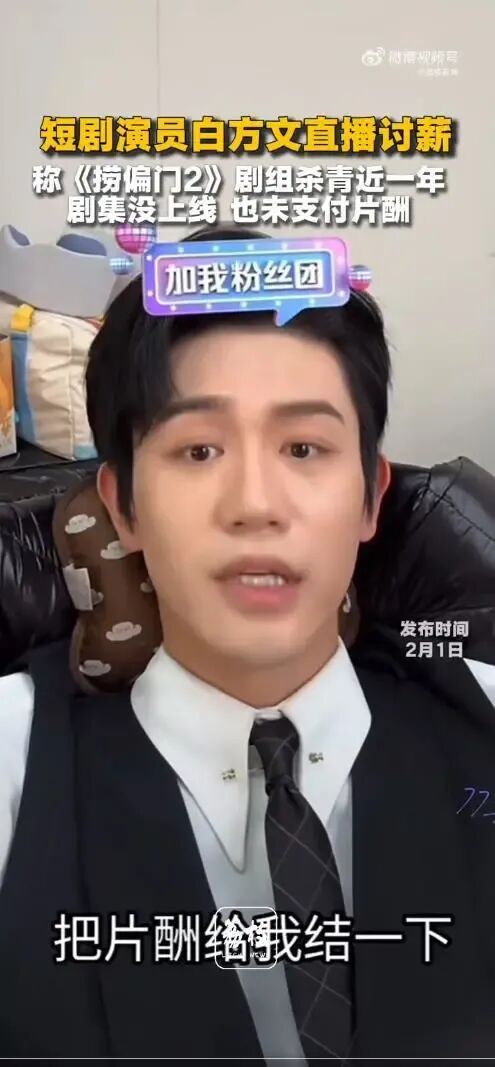 白方文的直播举牌,撕开了短剧行业光鲜表象下的薪酬乱象。 头部演员尚且遭遇系统性欠薪,底层演员的处境更加堪忧。 这场公开讨薪引发的关注,远超任何一部短剧的剧情,折射出行业对基本规则与从业者尊严的迫切呼唤。