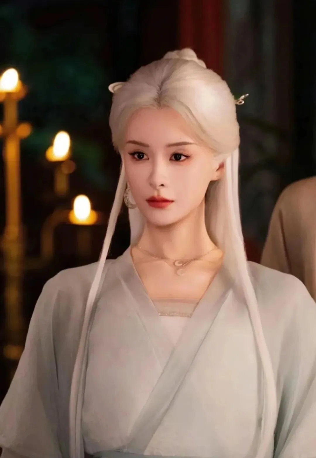 女主出场的时候,白发垂肩、玄绫覆目,高人的姿态拿捏死死的,去拿自己的东西的过程中倒也顺利。