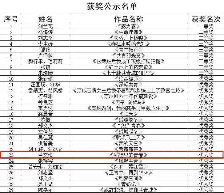 其中,我院兰文海同学凭借作品《稻穗里的青春》荣获优秀奖。