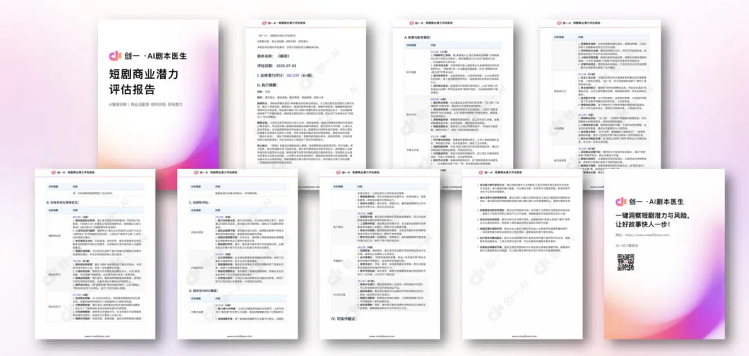 对制片方来讲,我们推出了“批量评估”功能,10部剧本可以同时评估,会有8000字以上的“评估报告”,对比制作难度和商业化潜力,让他们快速选出最值得投资的那个项目。用了这个功能,将选品时间大大的缩短,并且避开了2个合规风险剧,这就是精品化转型要做的效率和精准化。
