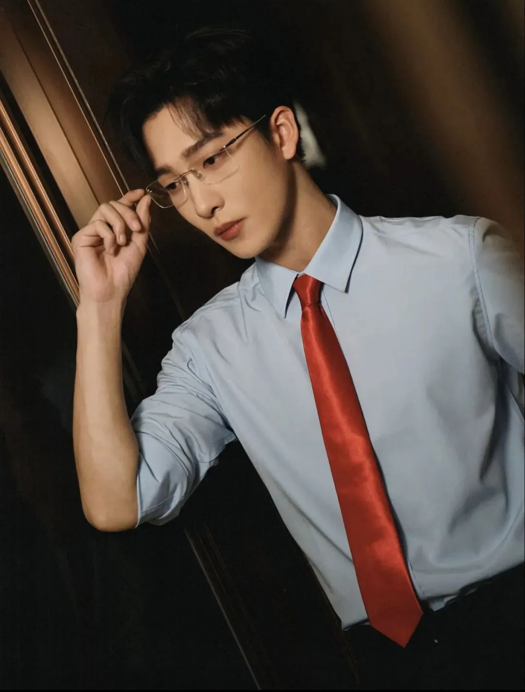 《闪婚后》里的病娇霸总造型,金丝眼镜一戴,斯文败类的感觉瞬间就有了。