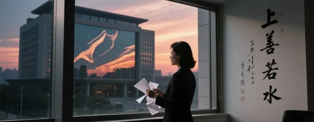 (午后阳光透过厚重的窗帘缝隙,切割在红木办公桌上。孙某雪刚送走一批客商,略显疲惫地靠在椅背上。办公室宽敞明亮,墙上挂着“上善若水”书法,书柜里摆满各种理论著作和本地文化丛书。她四十五岁,衣着得体,干练中带着一丝不易察觉的焦虑。)