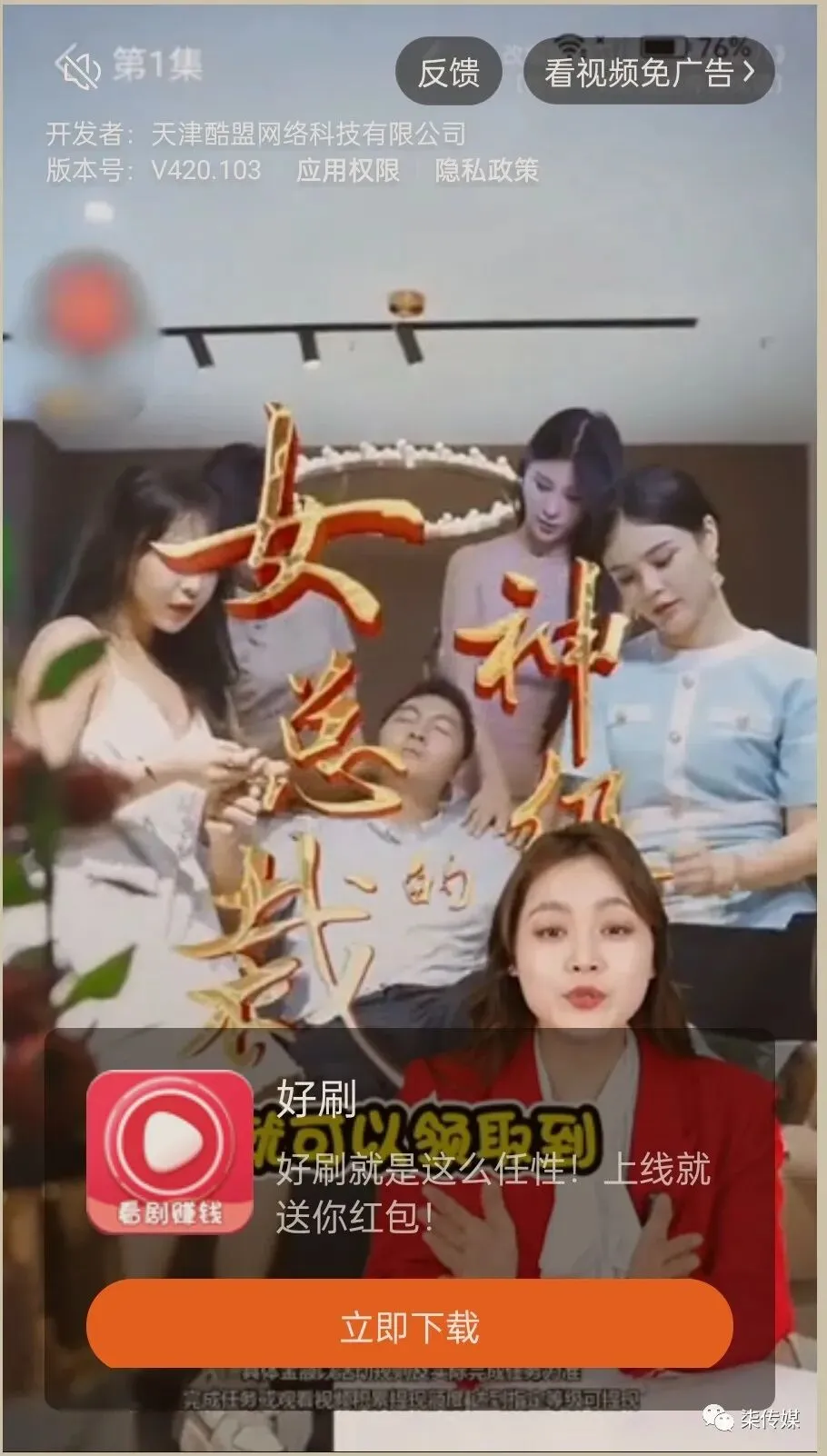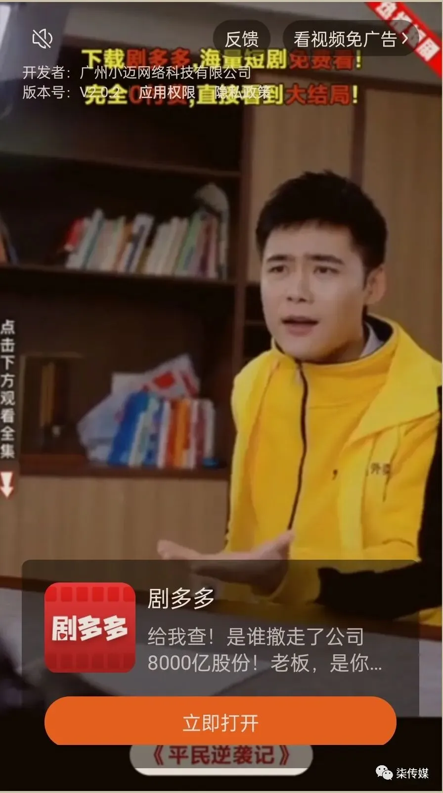 最近打开抖音除了咱们正常的小程序短剧平台资源投放以外(比如最近的史上最强姑爷),投流买量最多的是一些APP短剧公司。