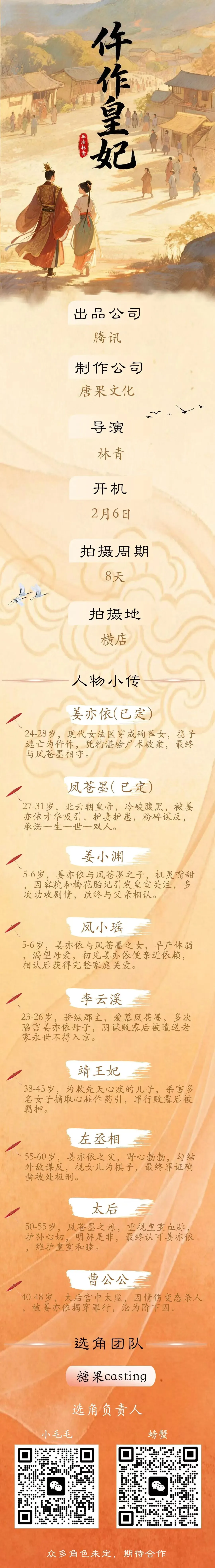 >【2月6日 横店】短剧《仵作皇妃》招募演员