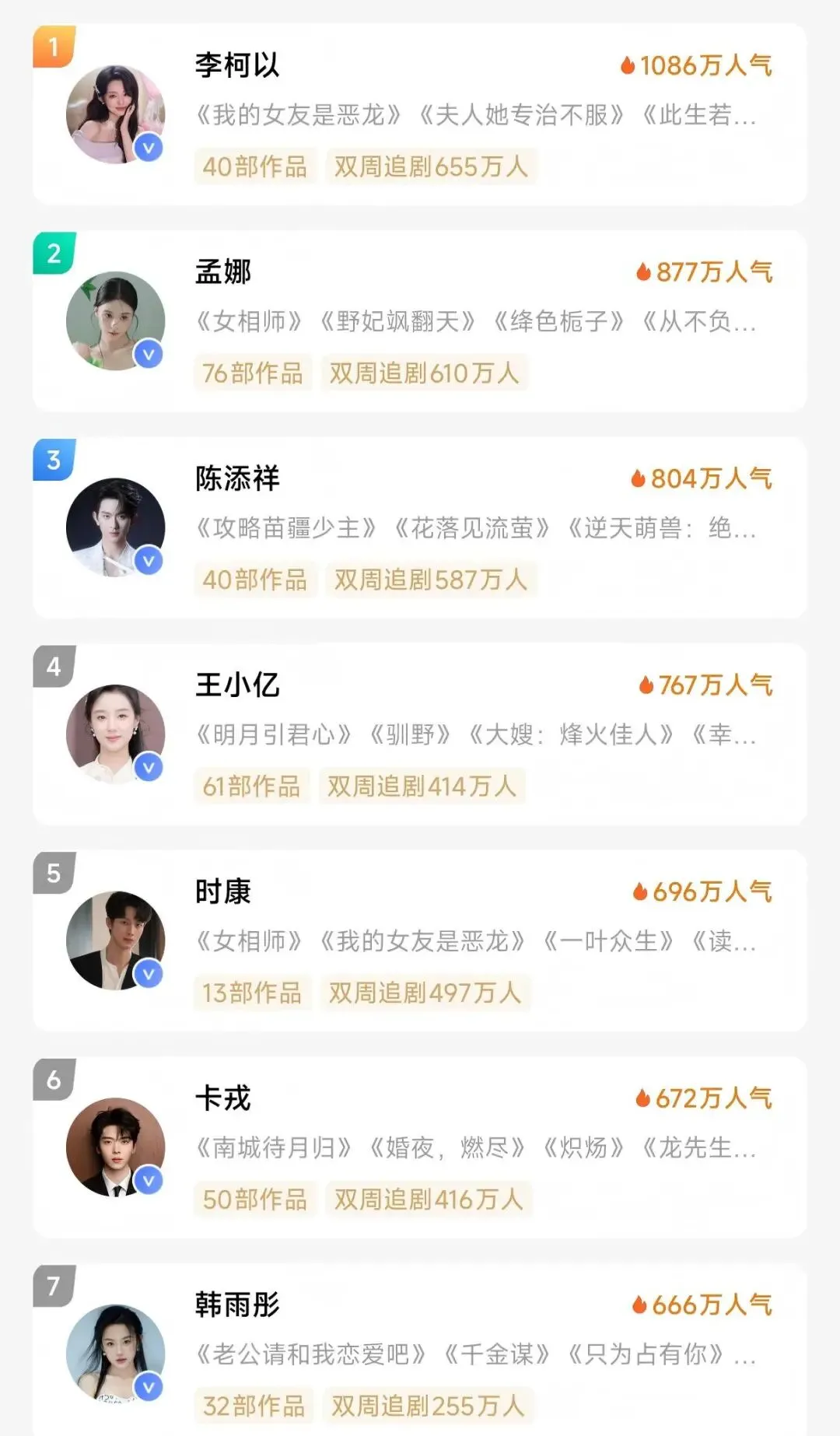 排名第二的《女相师》热度 8179 万,东方玄幻题材,由演员孟娜和时康主演,获得 296.1 万收藏和 366.8 万次点赞。