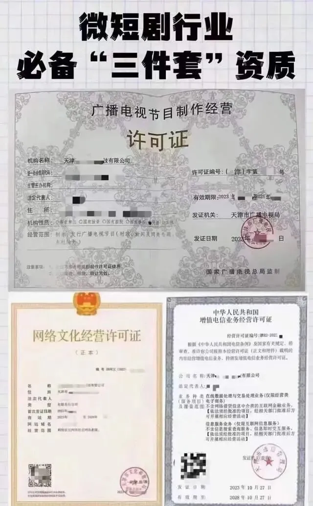 一:短视频类平台短剧需要这三件资质: