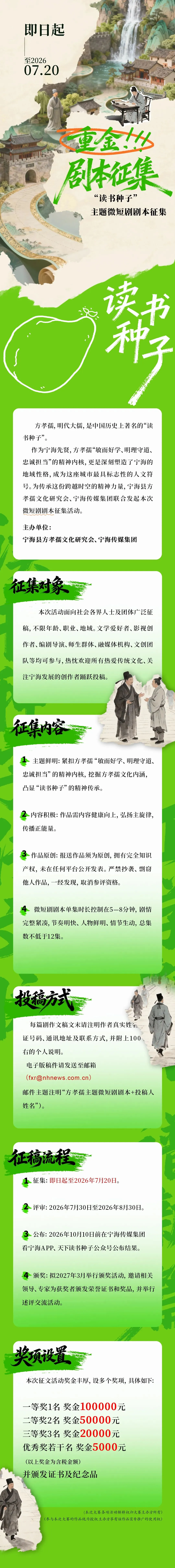 >最高10万元!“读书种子”主题微短剧剧本征集,一起头脑风暴吧