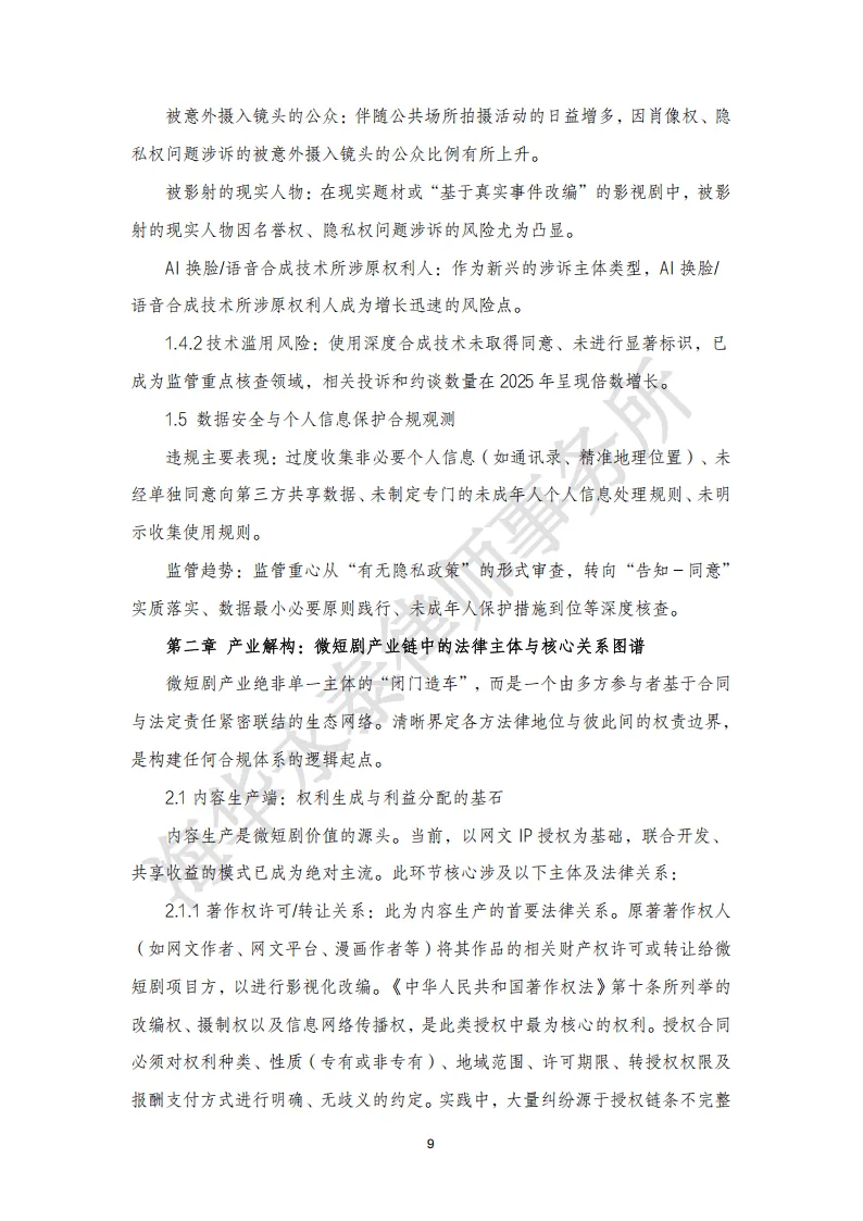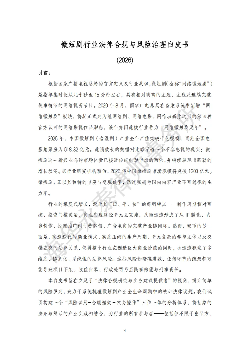 《海华永泰律师事务所微短剧行业法律合规与风险治理白皮书(2026)》立足行业发展现状,系统梳理了微短剧产业全生命周期的法律合规问题与治理方向。白皮书指出,2025年中国微短剧产业产值突破千亿,市场规模接近传统电影市场两倍,成为内容产业重要力量,但行业“短平快”的发展特点也使其积聚了多维度、链条化的法律风险,合规建设成为行业高质量发展的关键。完整版报告已上传至星球,扫下方优惠券加入即可下载所有报告