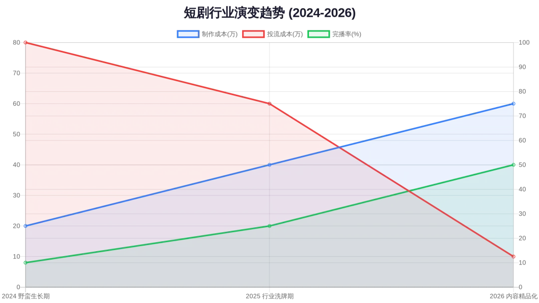 2024年到2026年,短剧行业经历了从野蛮生长到精细运营的剧烈转变。早期短剧靠"爽点密集+投流轰炸"快速起量,一部剧制作成本几十万,投流费用几百万,ROI(投资回报率)能做到1:1.5就算成功。但到2026年,纯靠投流的模式越来越难做,用户审美疲劳,平台算法调整,行业开始从"流量生意"转向"内容生意"——真正靠剧情质量、用户口碑、长期IP价值赚钱。这个转变背后,藏着什么样的商业逻辑?
