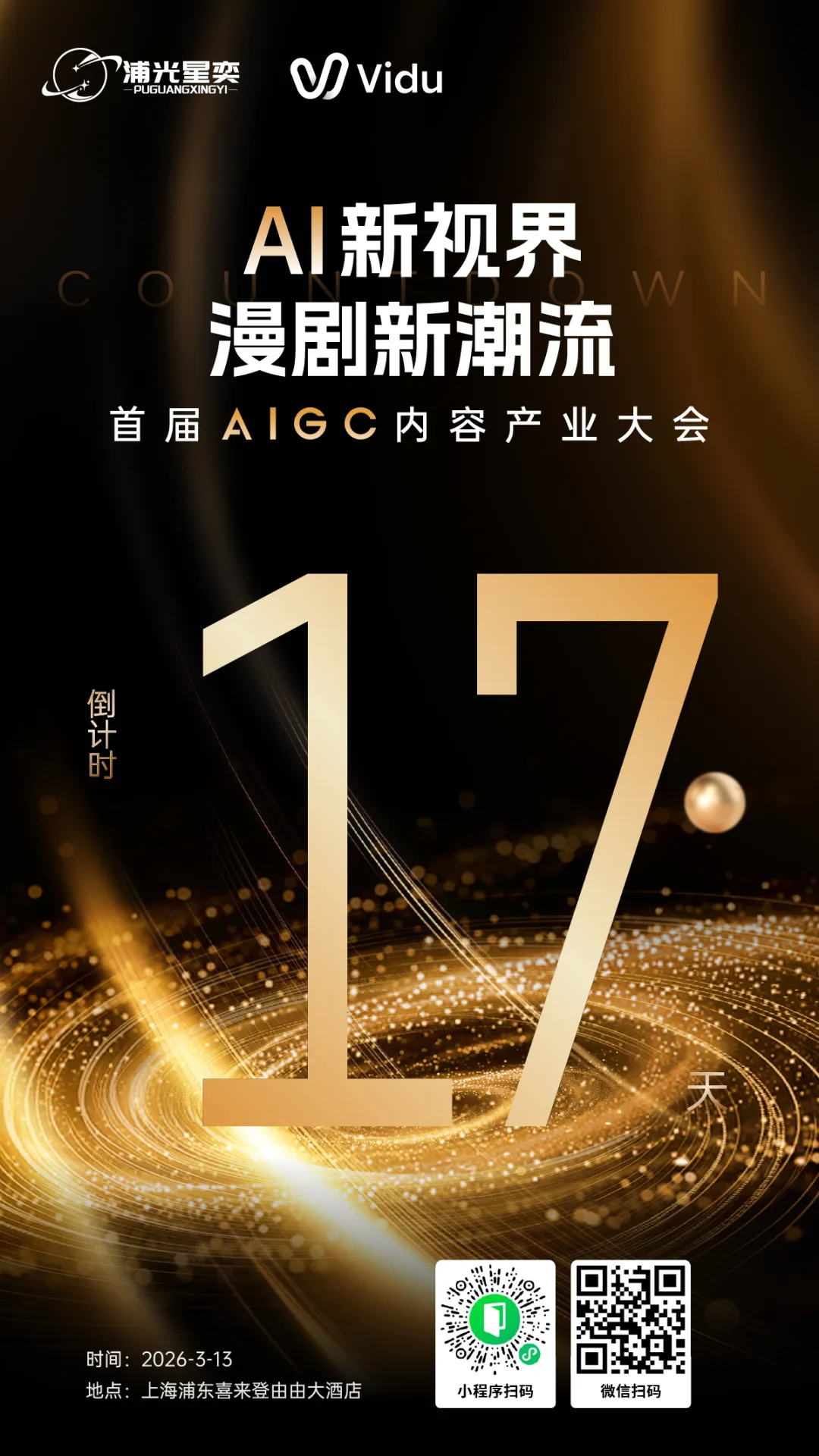 本次大会由上海浦光星奕文化科技有限公司、北京生数科技有限公司联合主办,定位于AIGC内容产业开年第一场全产业链盛会。以「AI新视界·漫剧新潮流」为主题,聚焦漫剧、AI内容创作、IP工业化等前沿议题,致力于搭建从技术、内容到商业的深度链接场。