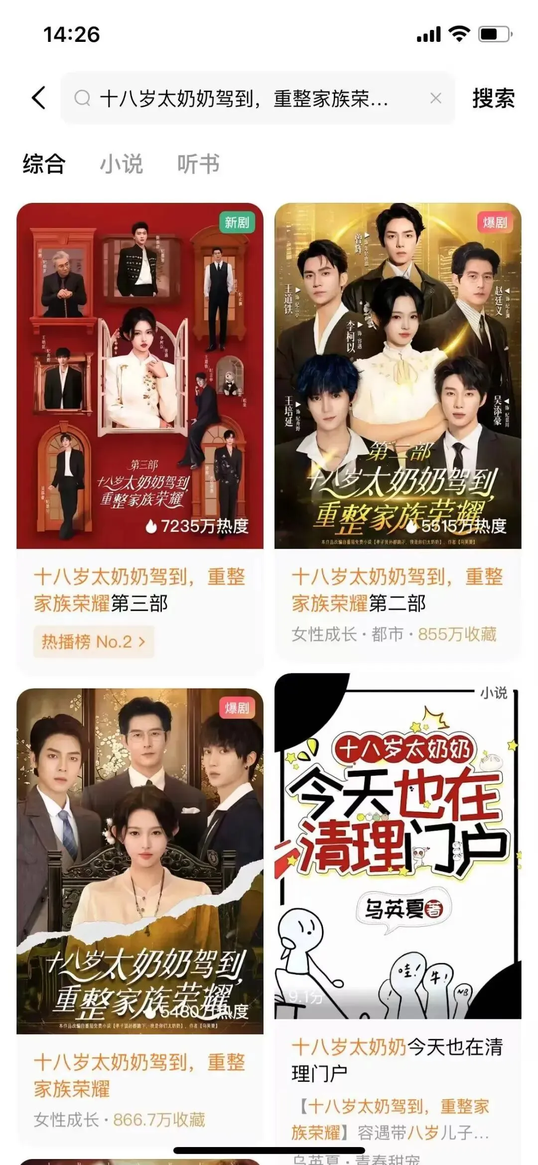 系列化IP成为市场主流,头部系列IP的分账占比将超60%。《十八岁太奶奶驾到》《穿书富家妯娌》等国民IP持续发力,并向"短剧-长剧-游戏-衍生品"全生态延伸。