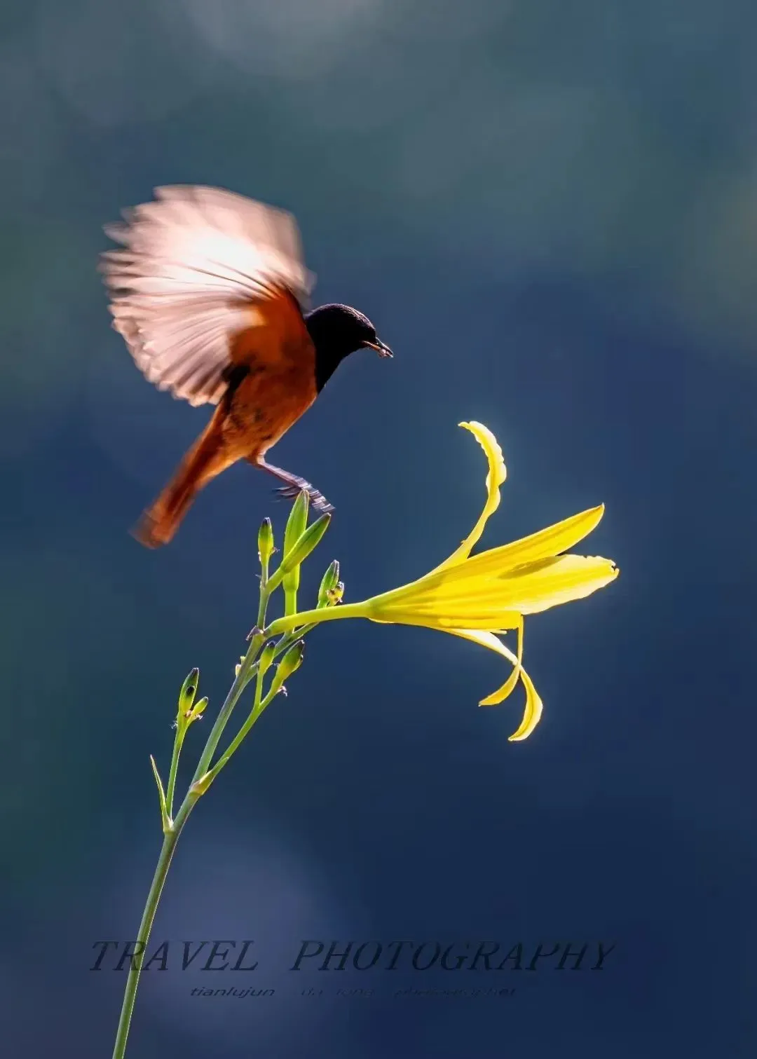 凤凰振翅穿越云层,金色羽毛洒落成星点