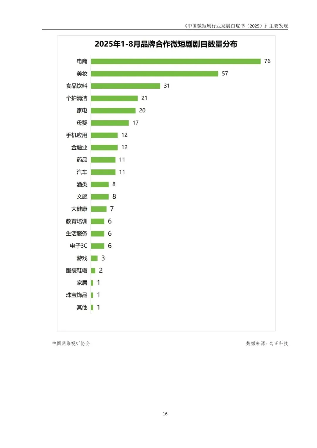 - AI 赋能产业,催生新赛道与大众共创:AIGC 技术推动创作平权,创作者效率提升 50%,团队结构更扁平开放,超六成从业者认为 AI 是核心增长点。动画微短剧规模化爆发,2025 年 1-8 月上线 2902 部;AI 真人剧实现突破,常规成本降至每分钟 1000 元,用户以 31-50 岁、三线及以下城市为主(占比 61.7%)。“微短剧 +” 模式成熟,与文旅、非遗、品牌等融合,2025 年 1-8 月 87 个新品牌试水微短剧营销,电商取代美妆成为领投领域。