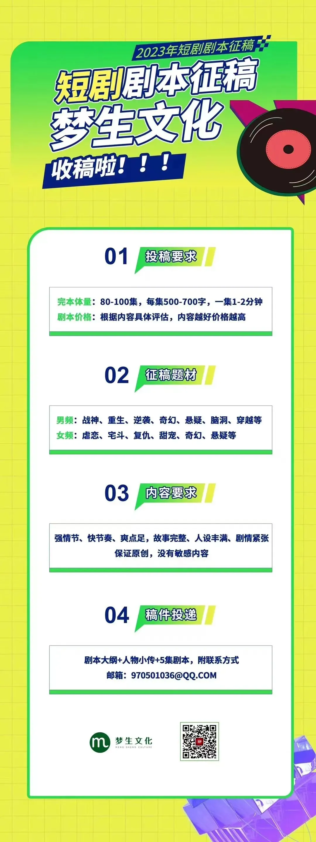 短篇/中短篇/动态漫剧本/短剧剧本约稿函