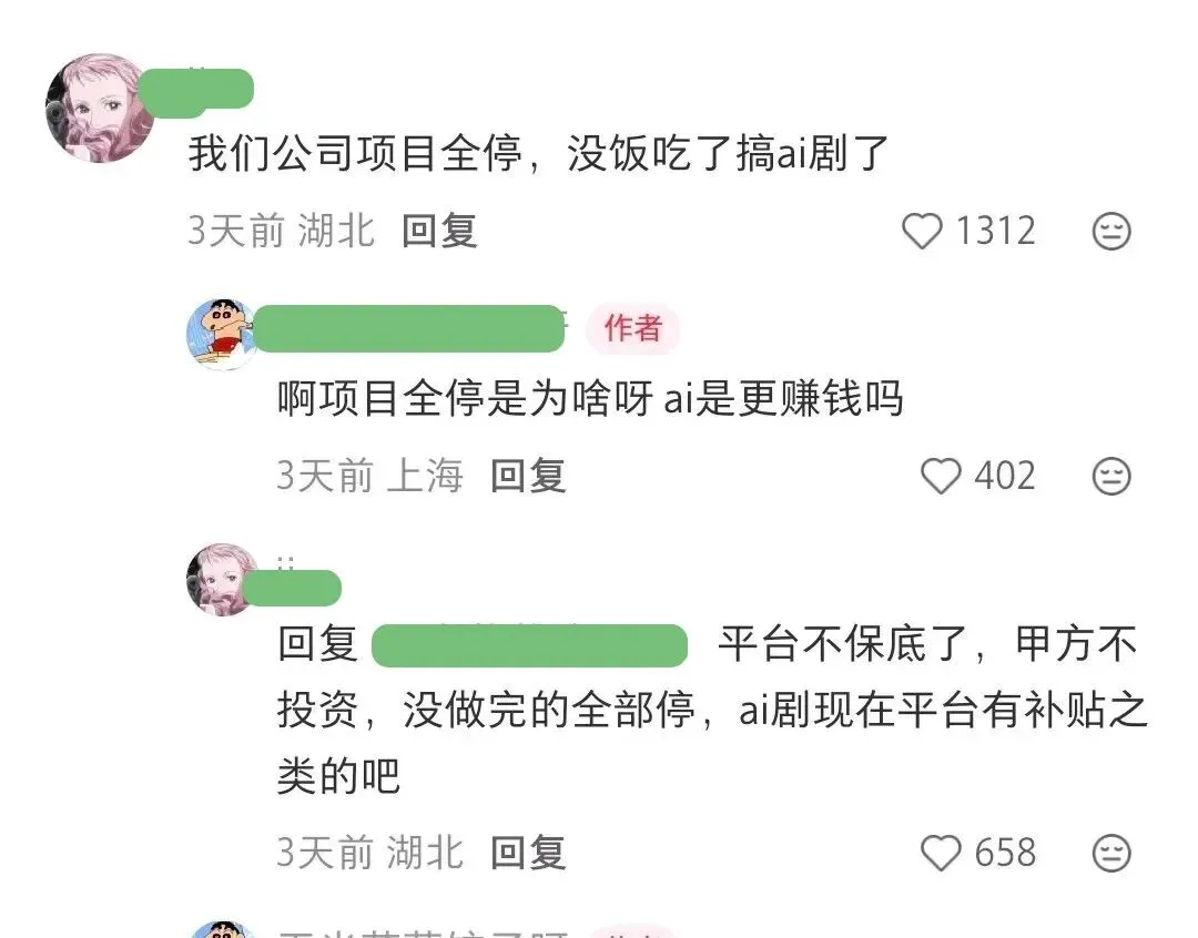 还有人说公司的真人短剧项目全部停了,即使没有做完的剧也停了下来。