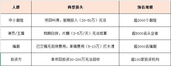 刚入局的中小剧组,合同还没签完,项目直接黄了,前期投入打了水漂;