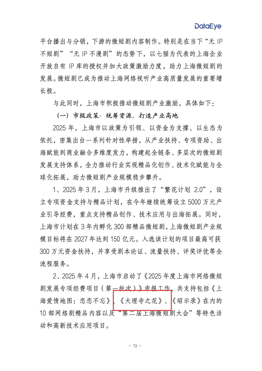 《大理寺之花》是由高寒、周华德联合执导,杨馥羽、谢予望主演的古装传奇题材星芒短剧 ,葵花药业独家冠名。该剧于2024年12月14日在快手平台首播 ,讲述现代医学专家李晓薇意外穿越成为古代左院判庶女李葵花,凭借专业医学知识救治病患,却被卷入复杂纷争的故事。在《报告》中,大理寺之花作为《2025年度上海市网络微短剧发展专项经费项目(第一批次)》申报工作特色活动和高新技术应用项目被重点提及。