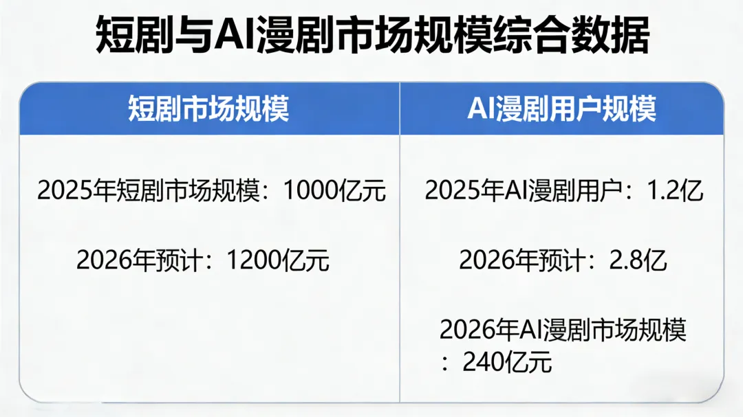 市场规模持续扩容,政策双向发力:2025年短剧、漫剧市场规模达1000亿元,2026年预计破1200亿元,其中AI漫剧预计达240亿元;AI漫剧用户将从1.2亿增至2.8亿,受众向中老年延伸。政策上,上海闵行、河南出台扶持政策,最高扶持300万元;广电实行分类审核,落实从业人员实名制,规范行业发展。