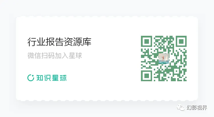 本文仅供参考,不代表我们的任何投资建议。幻影视界整理分享的资料仅推荐阅读,用户获取的资料仅供个人学习,如需使用请参阅报告原文。幻影视界行业报告资源库,每天分享实用资源。扫描下方二维码加入后,直接搜索下载,海量的历史资料随时查看、随意下载。免责声明:以上报告均系本平台通过公开、合法渠道获得,报告版权归原撰写/发布机构所有,如 涉 侵 权 , 请 联 系 我 们 及 时 删 除 ;内容为推荐阅读,仅供参考学习,如对内容存疑,请与原撰写/发布机构联系。
