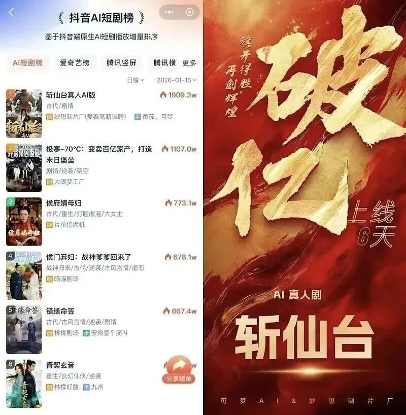 与此同时,《斩仙台真人AI版》上线6天播放量破亿,《孤城照》中AI演员“眉目传情”让观众直呼“不提示根本看不出是AI”。