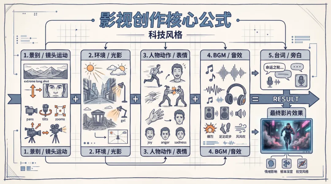 总结规律: 剧本创作一定要遵循 “问题-阻碍-反转-爽点” 的闭环逻辑 。每30秒必须出现一次情绪波动,每集必须解决一个小问题(比如揭穿一个小阴谋、反击一次反派),同时引出一个更大的问题(比如父亲的秘密、女主的身世),让观众忍不住追更。分镜提示词——AI时代的“导演手册”,新手也能拍好片很多新手编剧写完剧本,交给摄影师或AI拍摄,结果拍出来的东西“没味儿”——没有情绪、没有节奏,完全不是自己想要的效果。问题出在:你没有给拍摄者“明确的指令”。在AI辅助创作的时代,你的分镜提示词,就是给AI(或摄影师)的“导演手册”,提示词写得越详细,拍出来的效果就越贴合你的预期。很多新手写分镜提示词,只写“拍女主哭”“拍男主发怒”,太模糊了。一个好的分镜提示词,必须包含“五维要素”,让拍摄者一眼就知道“拍什么、怎么拍、用什么氛围”。核心公式(必记): 景别/镜头运动 + 环境/光影 + 人物动作/表情 + BGM/音效 + 台词/旁白逐个拆解,结合案例说明,新手也能轻松写出“工业级”分镜提示词。景别和镜头运动,是分镜的核心,直接影响画面的冲击力。短剧常用的景别和镜头运动,不用复杂,记住这3个就够了:① 特写:聚焦人物的面部表情(眼睛、嘴角)或手部动作,放大情绪(比如女主流泪的眼睛、男主攥紧拳头的手);② 中景:展现人物的全身动作,适合拍摄对话、冲突场景(比如女主和反派吵架、男主反击反派);③ 推镜头:从远到近,聚焦某个细节,营造紧张、压抑的氛围(比如从女主的全身,慢慢推到她颤抖的手)。环境和光影,是“隐形的情绪表达”。同样是“女主哭”,明亮的环境和昏暗的环境,表达的情绪完全不同——明亮环境是“委屈”,昏暗环境是“绝望”。短剧常用的光影技巧:冷暖对比(比如女主内心撕裂时,用冷色调的环境+暖色调的灯光)、明暗对比(比如反派出场时,用阴影遮挡面部,营造神秘感)。不要写“女主很伤心”“男主很生气”,要写“具体的动作和表情”——动作和表情越细节,越能让观众感同身受。示例:不要写“女主伤心”,要写“女主肩膀微微颤抖,双手捂住脸,眼泪从指缝里流出,嘴角抑制不住地往下撇”;不要写“男主生气”,要写“男主眉头紧锁,攥紧拳头,指关节发白,眼神冰冷,嘴角勾起一抹冷笑”。短剧的BGM和音效,是“情绪的催化剂”。好的BGM和音效,能让观众的情绪瞬间拉满;反之,没有音效,画面会变得很平淡。短剧常用的音效:钢琴独奏(虐心场景)、鼓点音乐(爽点场景)、雷声/雨声(压抑场景)、清脆的耳光声(冲突场景)、留白(结尾悬念场景,音乐戛然而止,留2秒空白,增强紧张感)。短剧的台词,必须“口语化、短平快”,像吵架一样真实,不要写书面语。旁白则用于补充背景信息、传递人物内心想法,不用太多,点到为止。2. 实操演示:3类热门场景,分镜提示词模板(直接复制用)下面3类短剧热门场景,每类都给完整的分镜提示词模板,适配AI(Midjourney、Sora)和真人拍摄,新手直接复制修改,就能拍出专业效果。- 场景1:女主发现丈夫出轨(都市情感类,虐心+反转) : 特写聚焦女主的情绪,冷暖对比暗示女主内心的撕裂,音乐留白增强紧张感,让观众瞬间共情女主的绝望,同时留下悬念——女主会怎么做?