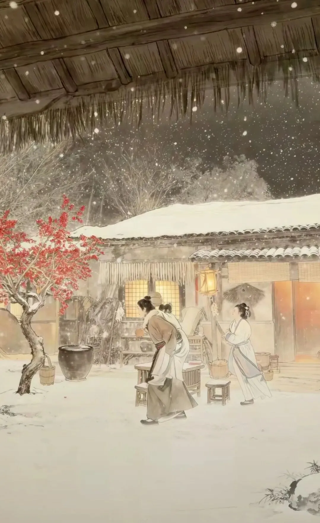 ▲侍卫离开,母亲晕倒在雪地上。