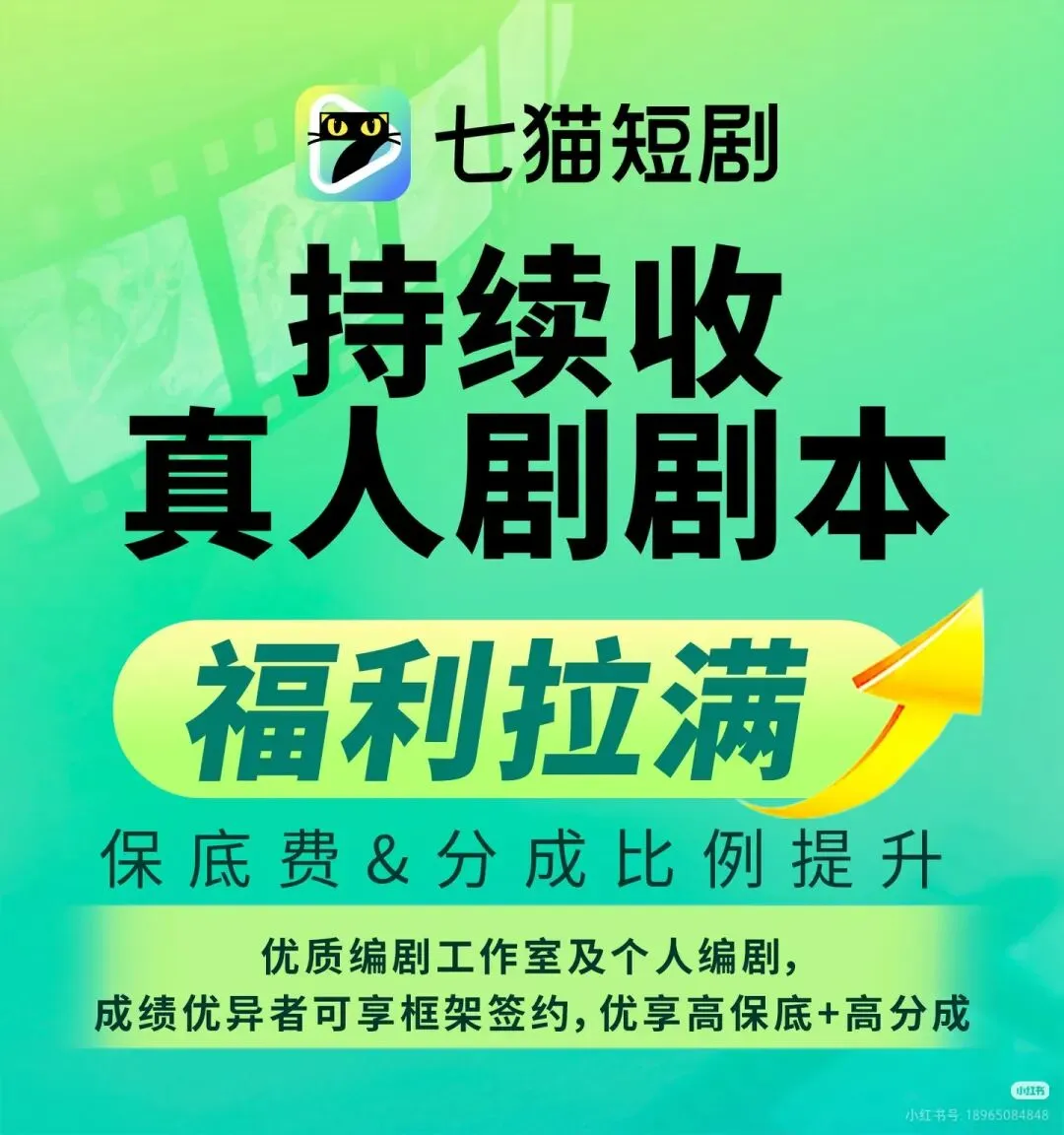 七猫持续收真人短剧剧本,单本保底1.5万起