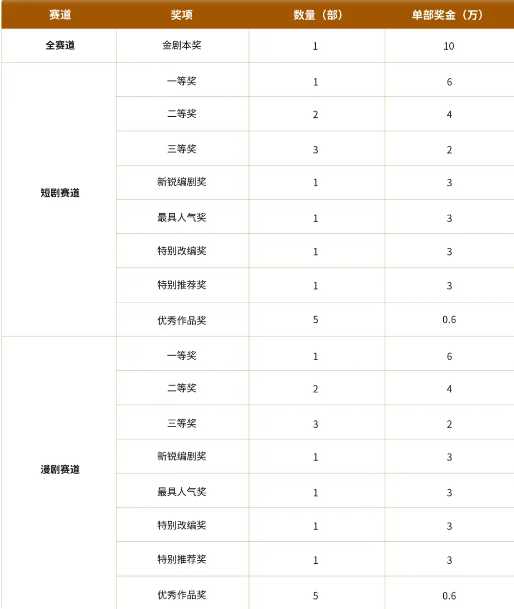 本次大赛设有“短剧赛道”与“漫剧赛道”两大类别,奖项设置丰富、奖励力度大,充分激发创作者积极性。其中,“金剧本奖”为全赛道最高荣誉,奖金高达10万元,旨在表彰最具艺术水准与市场潜力的原创剧本;“新锐编剧奖”“最具人气奖”“特别改编奖”等专项奖项,则进一步鼓励青年创作者、观众互动与IP转化能力。