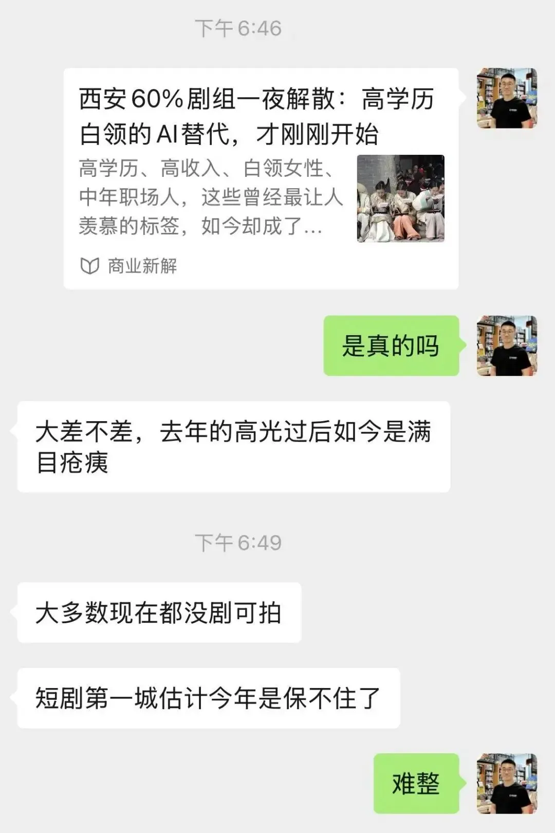 朋友说其他行业他不懂,但从短剧这个新兴事物来看,他是真的看到了西安长时间在保持绝对领先的前提下,如何一步步不思进取、保守且固执的逐渐成为了二流队伍。