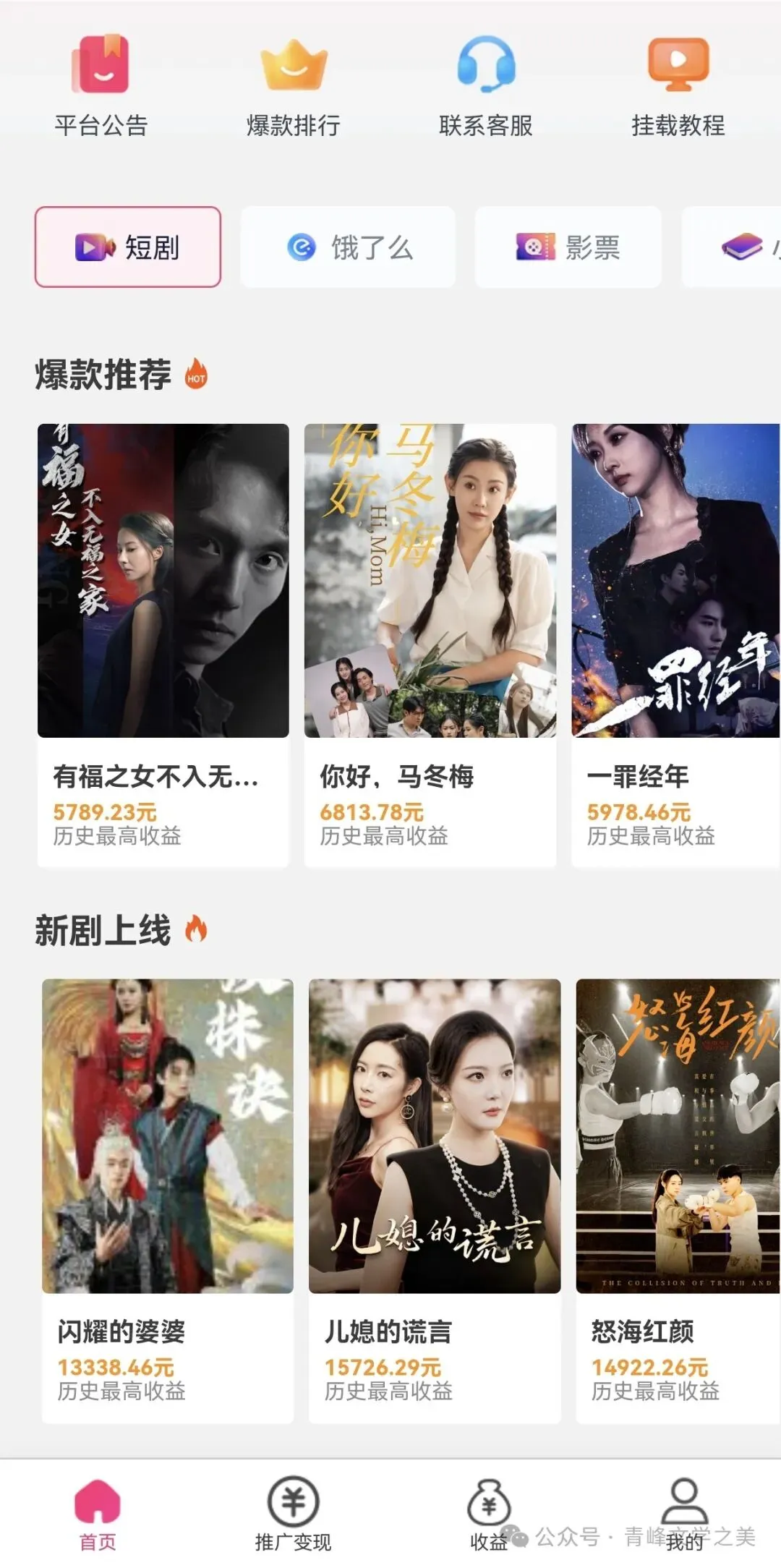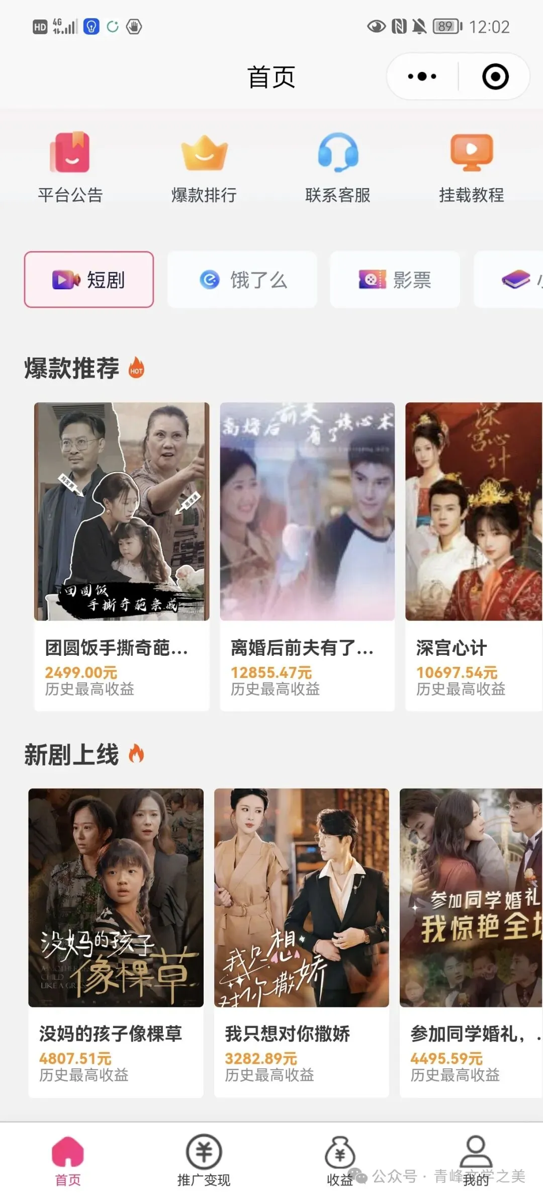 3. 便捷的小程序功能:推广短剧、小说,卖电影票,领取饿了么优惠券,让您收益翻倍!