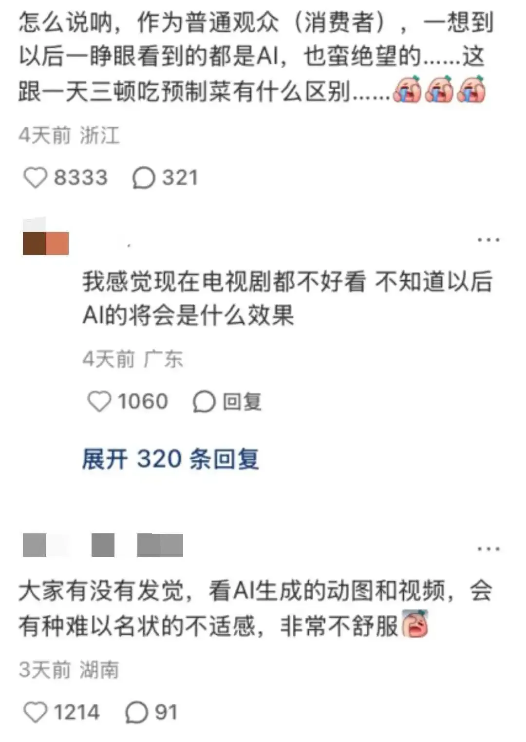 所以,AI更像是撕开了这层包装,让原本存在的问题变得可见,而不是问题的根源。问题的根源始终都是观众愿意为谁买单。