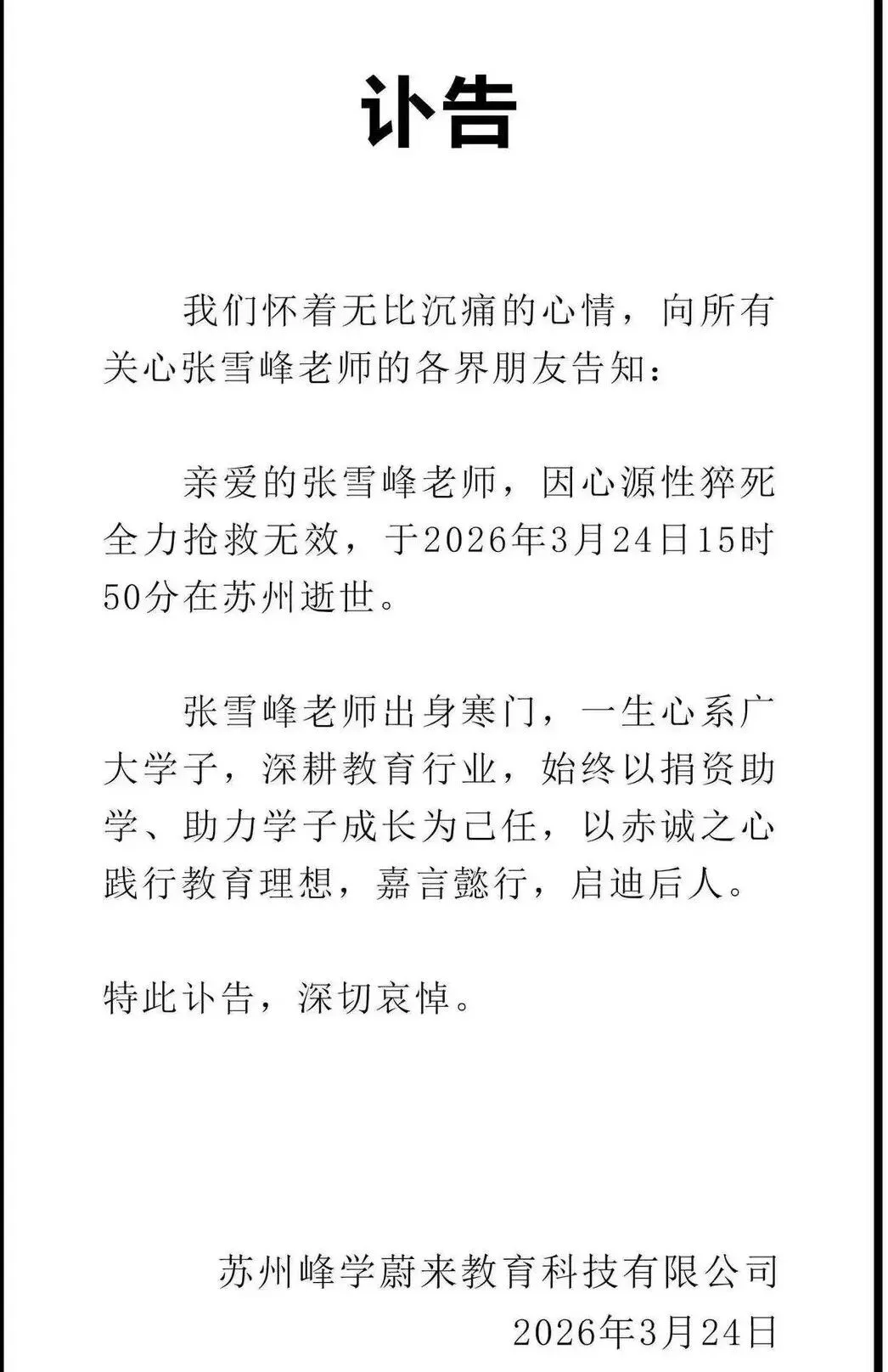 张老师说过的话还萦绕在耳边 :“新闻学不好,只是觉得理科590考新闻学不合适。他没说金融学不好,只是说家里没有点经济实力别学金融。他没说学医不好,只是说学医要供太久,家里如果着急你去很快挣钱 会很难。”各种媒体断章取义。可能张雪峰动了很多人的蛋糕得罪了一些人,不管舆论如何,永远支持三观很正,孝顺有责任又心系天下学子的张雪峰老师,给老百姓的孩子指路,真的很佩服!张老师一路走好。