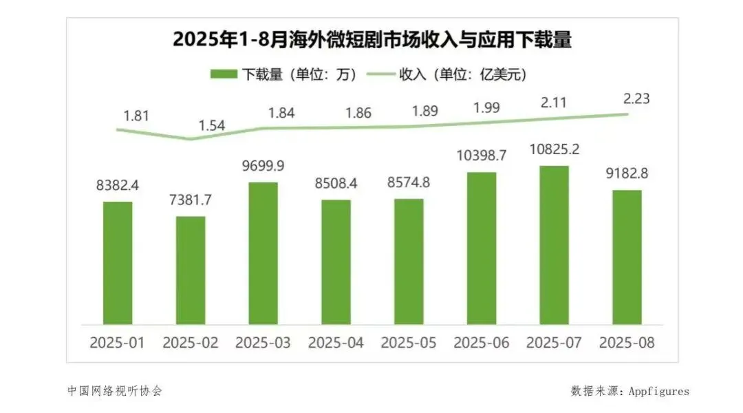 2025年1-8月,国产微短剧海外营收达15.25亿美元,同比激增194.9%;2026年第一季度,行业海外内购收入3.95亿美元,出海成为行业第二增长曲线,国产微短剧稳居全球市场主导地位。