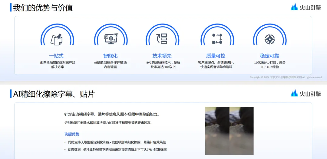 《火山引擎驱动短剧行业一站式增长报告》指出,火山引擎覆盖抖音小程序、独立APP、短剧出海三大短剧核心场景,提供从上传、存储、转码到分发的端到端音视频解决方案,依托BVC编解码、AI擦除/换脸、高清低码等技术,可降低15%-35%带宽成本,视频硬解比率超80%,已服务九州短剧、中文在线等数百家中头部短剧企业,技术赋能成为短剧行业增长的核心支撑。