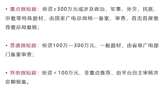 政策端:2024年6月1日起,广电总局正式实施“无备案不传播”监管规则,从源头封堵违规作品上线,筑牢行业内容合规底线。