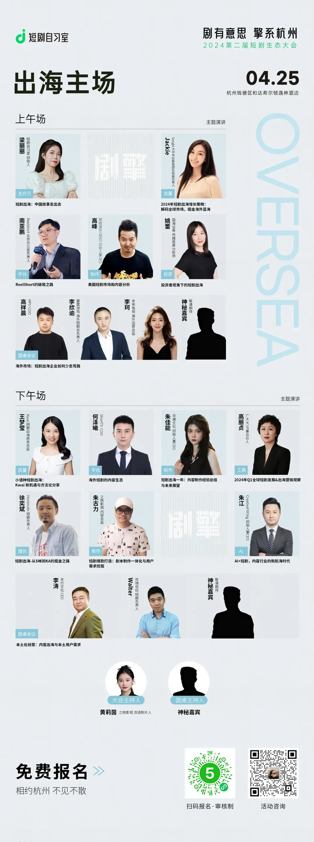 (下午场)以“微短剧产业的国际合作与交流”为主题的主题演讲,届时将有来自日韩、新加坡、东南亚等其他国家的微短剧从业者到场面对面交流;