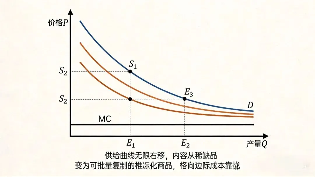 生产效率提升→行业门槛下降→市场供给过剩→价格战内卷加剧→核心稀缺性消失,当前AI漫剧与影视行业正加速经历这一产业周期。